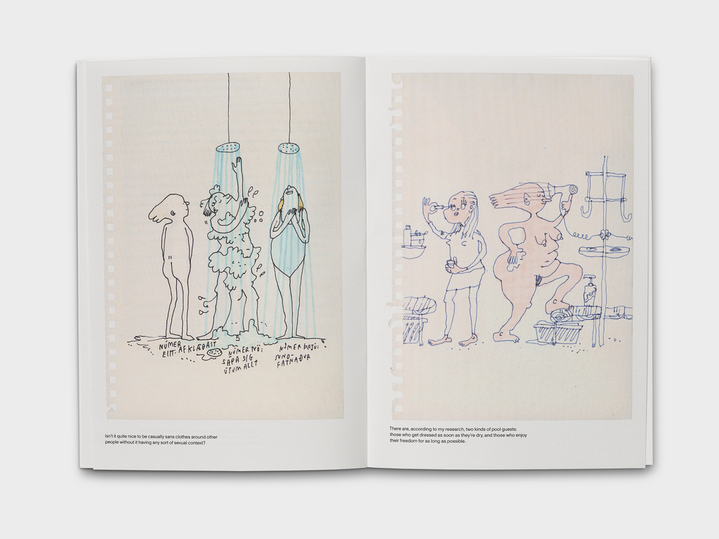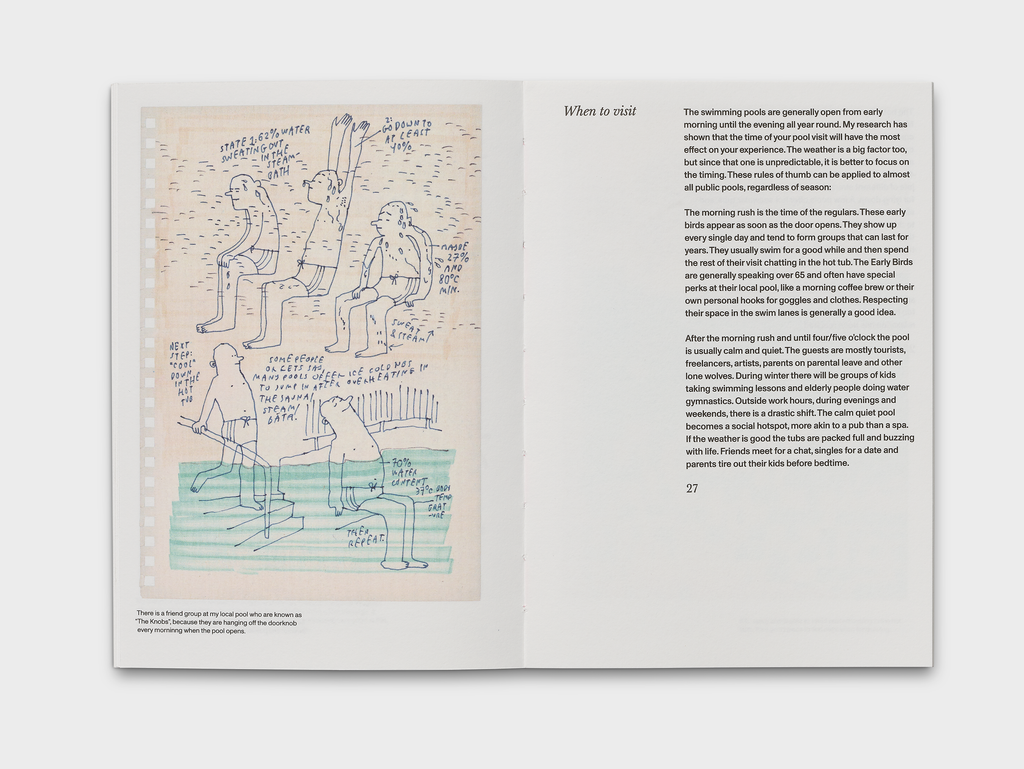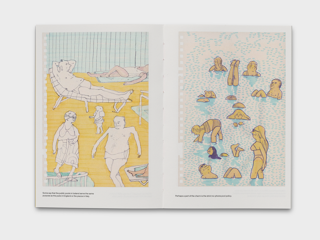 Rán Flygenring ferðaðist eitt sumar vítt og breitt um landið, dýfði sér í hverja laug, lón og náttúrupoll sem hún fann og festi baðmenningu á Íslandi í teikningar. Útkoman er stórkostleg handbók fyrir alla sem áhuga hafa á náttúru landsins, teikningu og mannlegu eðli, auk þess að vera leiðarvísir fyrir erlenda ferðamenn og sundlaugargesti. Bókin er á ensku.